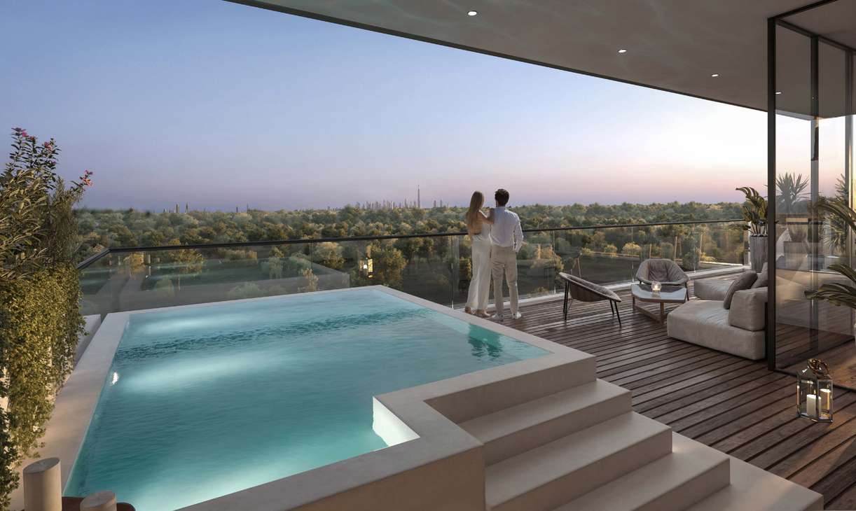 Discover 𝗚𝗵𝗮𝗳 𝗪𝗼𝗼𝗱𝘀 𝗯𝘆 𝗠𝗮𝗷𝗶𝗱 𝗔𝗹 𝗙𝘂𝘁𝘁𝗮𝗶𝗺: first-of-a-kind luxury apartments and duplex penthouses with resort-style amenities. The community is set to become one of the city’s top destinations. Majid Al Futtaim proudly presents Ghaf Woods Dubai – a groundbreaking eco-conscious community adjacent to Global Village. This pioneering “forest living” enclave offers an unparalleled living experience amidst lush greenery.Ghaf Woods Dubai features 1 to 3-bedroom apartments and duplex penthouses. Home to over 20 bird species and more trees than residents, this community is designed to keep outdoor temperatures up to 5°C cooler than surrounding areas.
